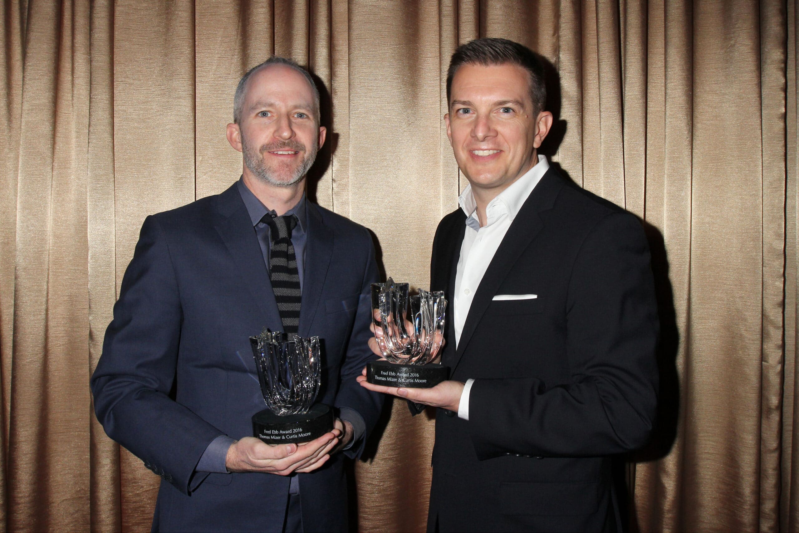 2016 Recipients Curtis Moore and Thomas Mizer attend the twelfth annual Fred Ebb Award for Musical Theatre Songwriting in the Penthouse Lounge at The American Airlines Theatre in New York City on November 28, 2016. Photo by Henry McGee