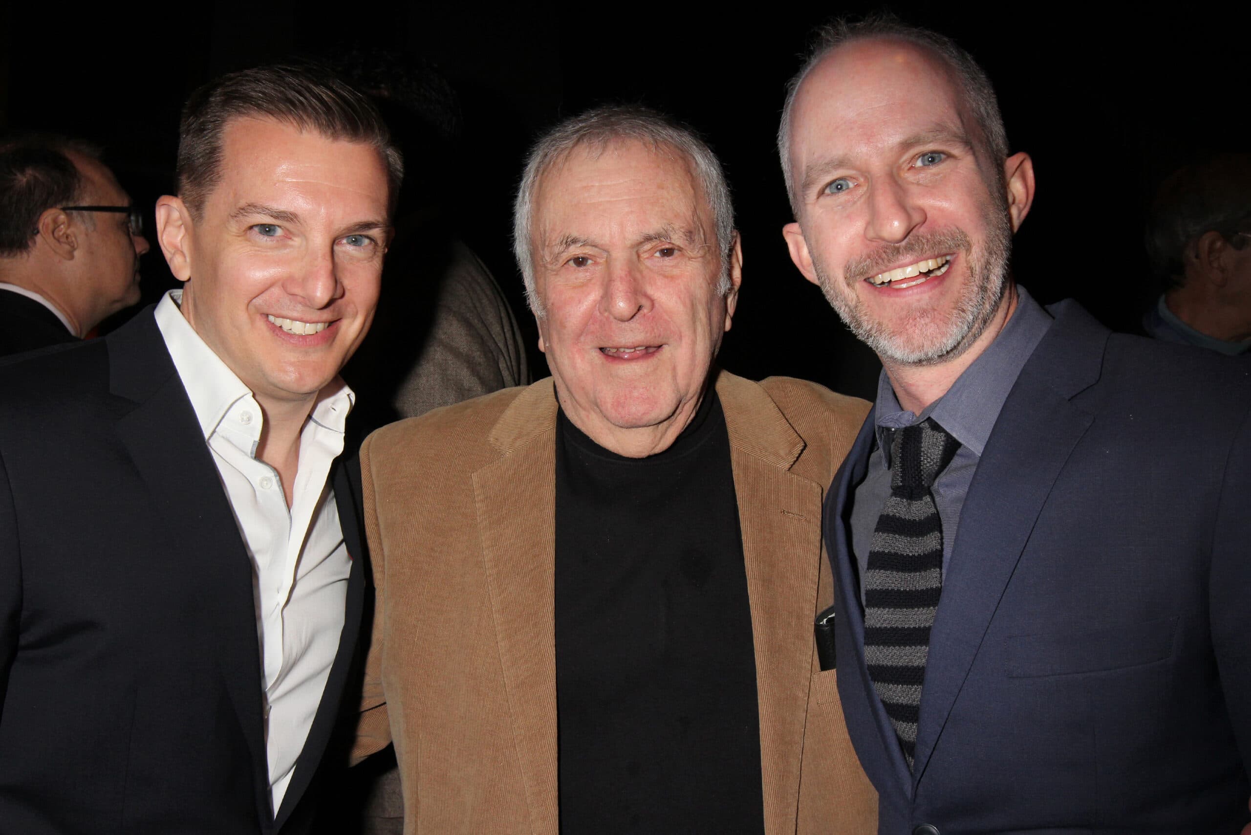 2016 Recipients Thomas Mizer and Curtis Moore with John Kander at the twelfth annual Fred Ebb Award for Musical Theatre Songwriting in the Penthouse Lounge at The American Airlines Theatre in New York City on November 28, 2016. Photo by Henry McGee