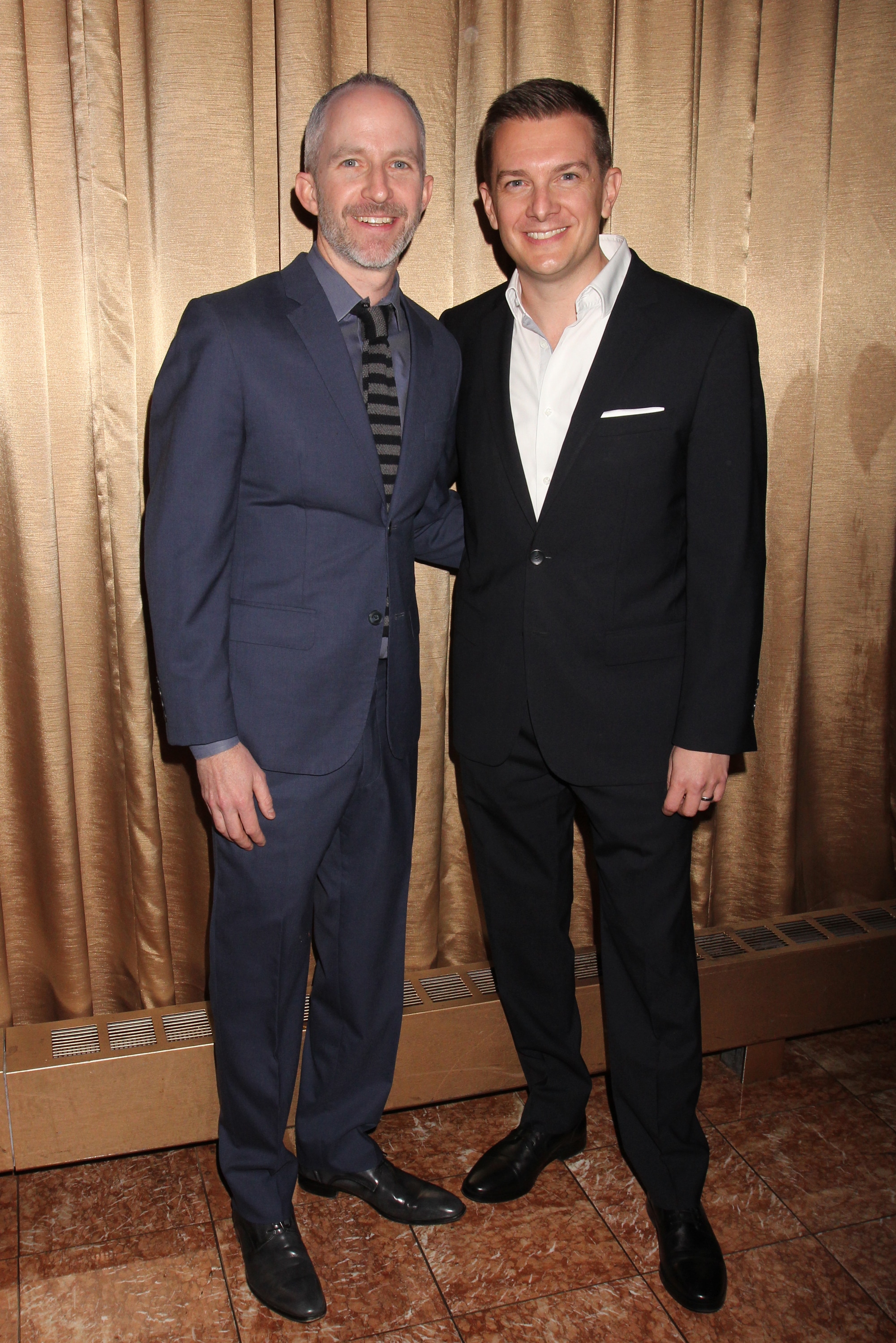 Mitchell S. Bernard, nephew of Fred Ebb and Trustee of the Fred Ebb Foundation and Jason Danieley attend the twelfth annual Fred Ebb Award for Musical Theatre Songwriting honoring Thomas Mizer and Curtis Moore in the Penthouse Lounge at The American Airlines Theatre in New York City on November 28, 2016. Photo by Henry McGee
