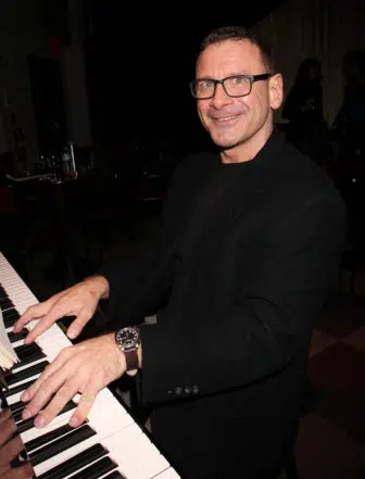 Colin Hanlon performing at the twelfth annual Fred Ebb Award for Musical Theatre Songwriting honoring Thomas Mizer and Curtis Moore in the Penthouse Lounge at The American Airlines Theatre in New York City on November 28, 2016. Photo by Henry McGee