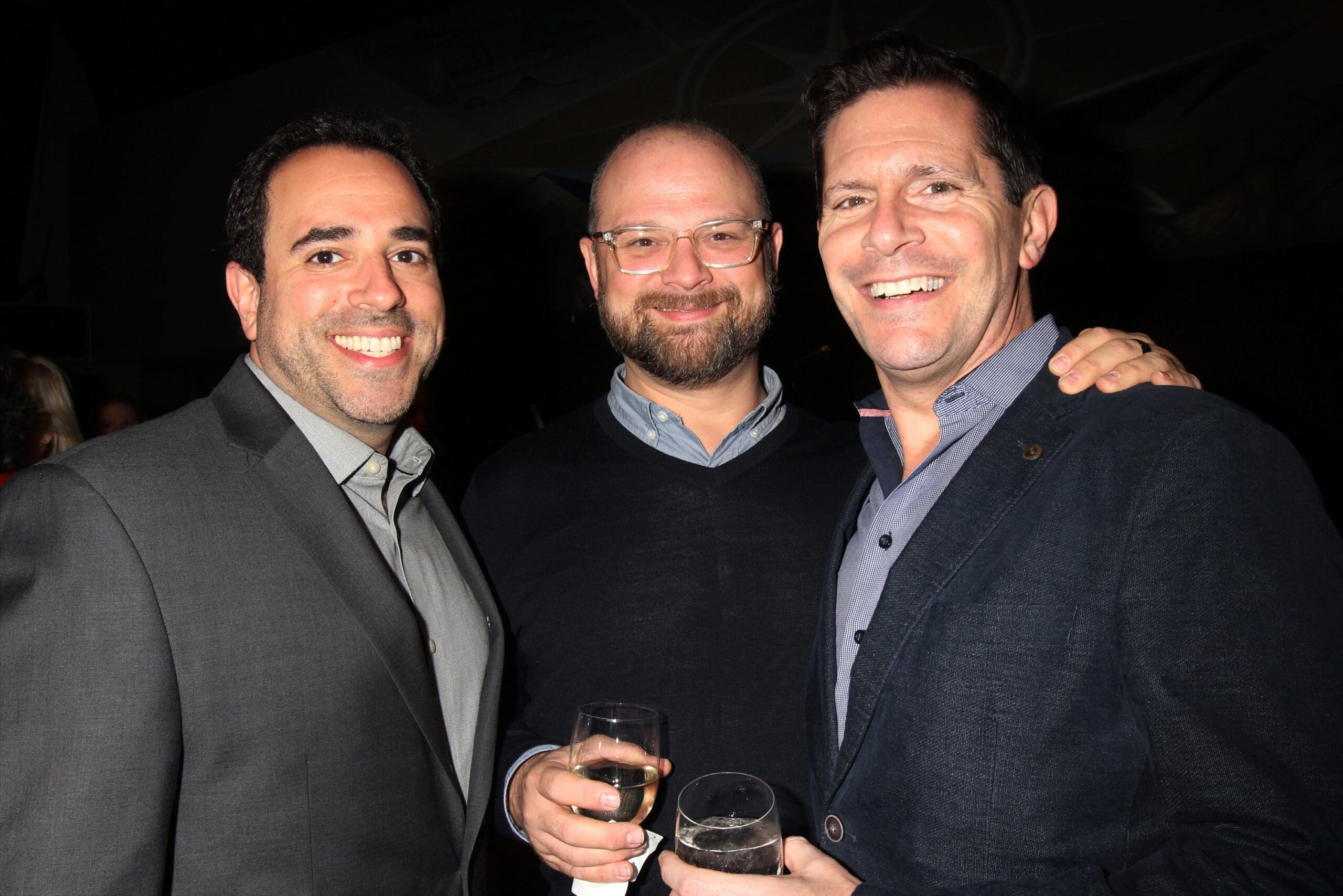 2016 Recipients Curtis Moore and Thomas Mizer with Sam Willmott, 2012 recipient at the twelfth annual Fred Ebb Award for Musical Theatre Songwriting honoring Thomas Mizer and Curtis Moore in the Penthouse Lounge at The American Airlines Theatre in New York City on November 28, 2016. Photo by Henry McGee