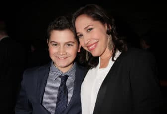 Andrea Burns and son Hudson Flynn attend the twelfth annual Fred Ebb Award for Musical Theatre Songwriting honoring Thomas Mizer and Curtis Moore in the Penthouse Lounge at The American Airlines Theatre in New York City on November 28, 2016. Photo by Henry McGee