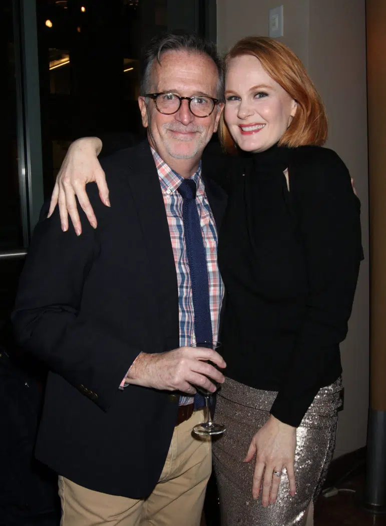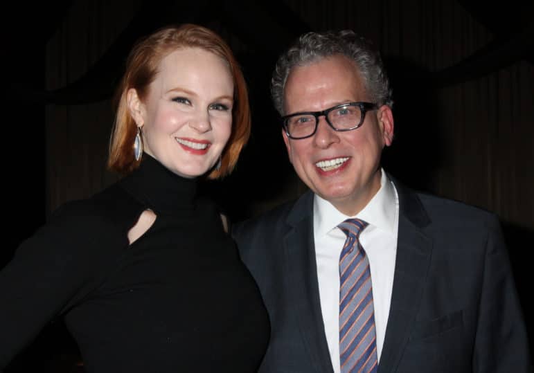 Tim Pinckney and Kate Baldwin attend the fifteenth annual Fred Ebb Award for Musical Theatre Songwriting honoring Angela Sclafani and Benjamin Velez in the Penthouse Lounge at The American Airlines Theatre in New York City on December 2, 2019. Photo by Henry McGee/Fred Ebb Foundation