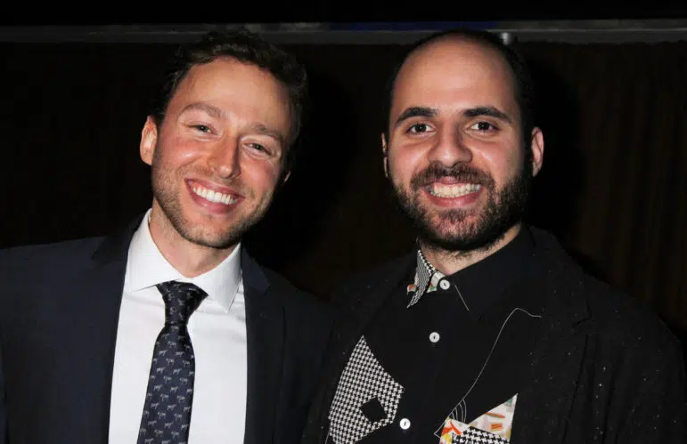 2019 Recipient Benjamin Velez and Mitchell S. Bernard, nephew of Fred Ebb and Trustee of the Fred Ebb Foundation attend the fifteenth annual Fred Ebb Award for Musical Theatre Songwriting honoring Angela Sclafani and Benjamin Velez in the Penthouse Lounge at The American Airlines Theatre in New York City on December 2, 2019. Photo by Henry McGee/Fred Ebb Foundation